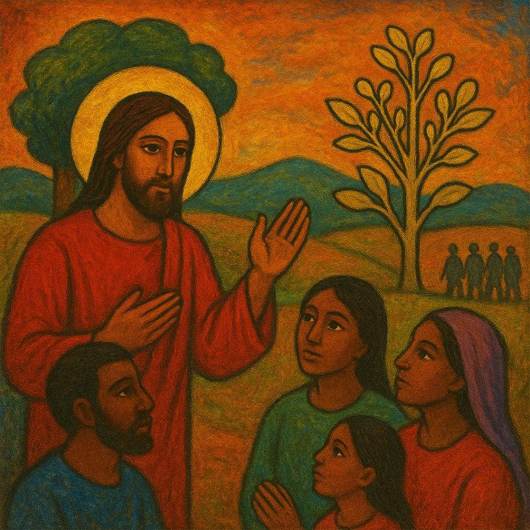 Jesus, com a parábola do grão de mostarda, apontava pra um ambiente social sem exploração daquela gente, pelo Império e pelo Templo. Todos deveriam caminhar para uma terra sem males, sem explorador e sem explorados. Isto vem desde o anúncio do Seu Projeto – (Lc 4, 18-19).